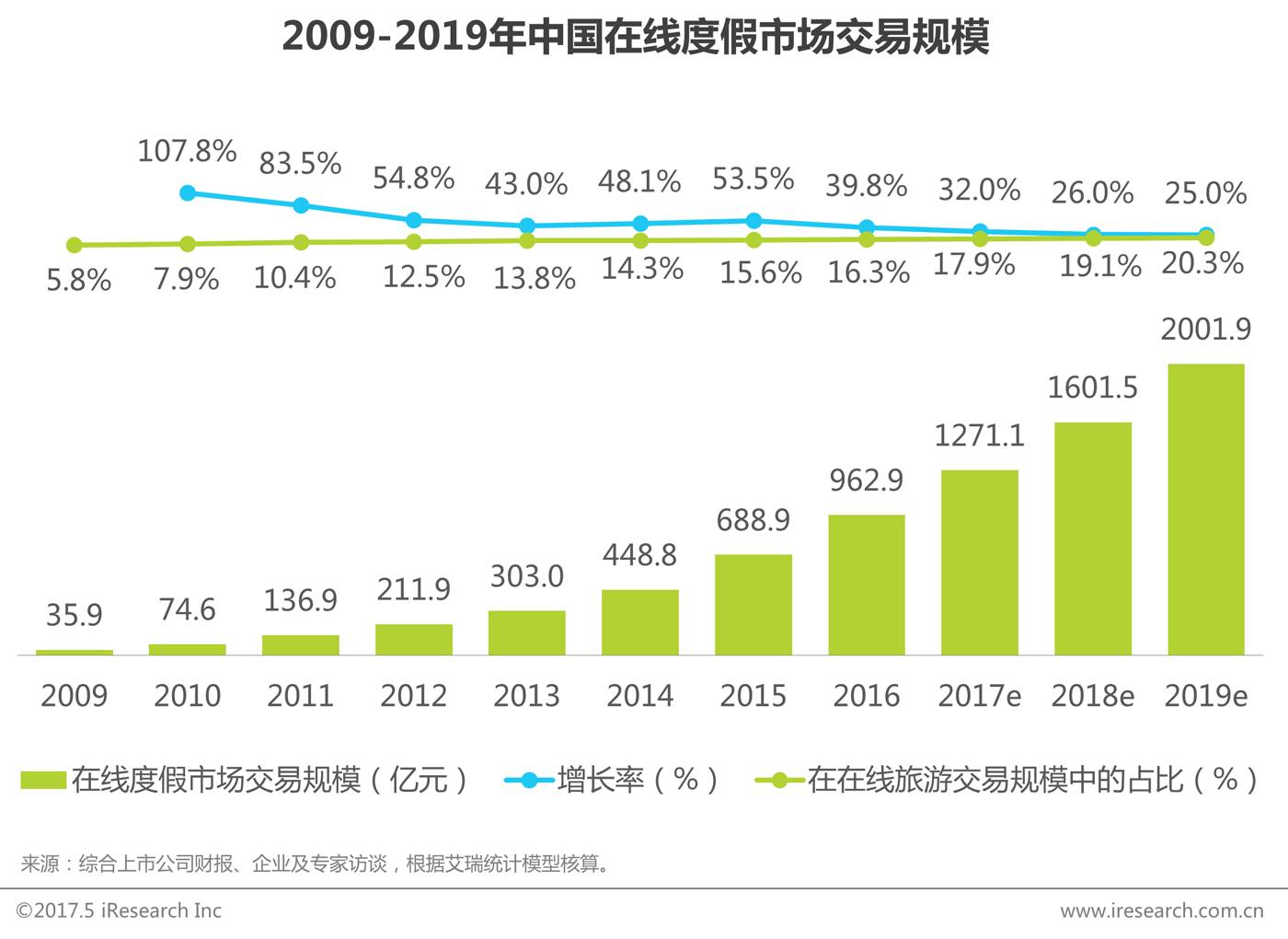 艾瑞咨询认为,在线旅游市场中,在线度假市场发展最为迅速,其占在线旅游行业比重从2009年的5.8%,增长至2016年的16.3%。整体而言,在线度假市场前景广阔,预计未来几年增长率将保持在25%以上。