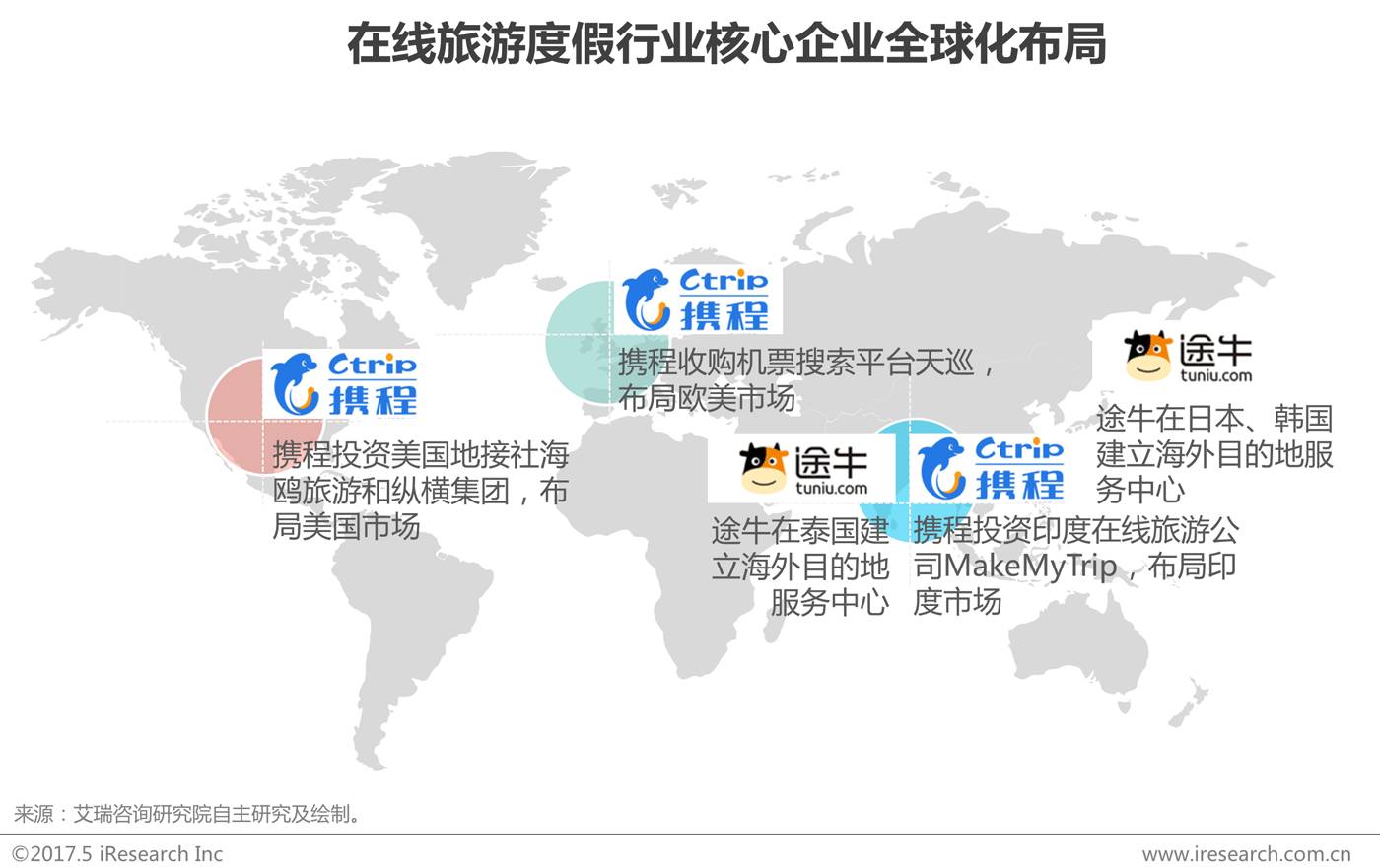 艾瑞分析认为,在出入境旅游持续火热的背景下,核心在线旅游度假企业积极布局海外市场:1)携程先后投资印度在线旅游公司MakeMyTrip、美国两大地接社海鸥旅游和纵横集团、英国机票搜索平台天巡,布局印度和欧美市场;2)途牛在日本、韩国、泰国等十多个国家和地区设立海外目的地服务中心,通过自建海外目的地服务中心以及与当地专业服务商合作,途牛可以为用户提供更全面的目的地服务和保障。