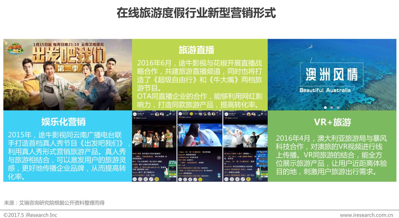 3、产品同内容和科技深度融合,衍生诸如娱乐化、旅游直播和VR+旅游等多种营销方式。