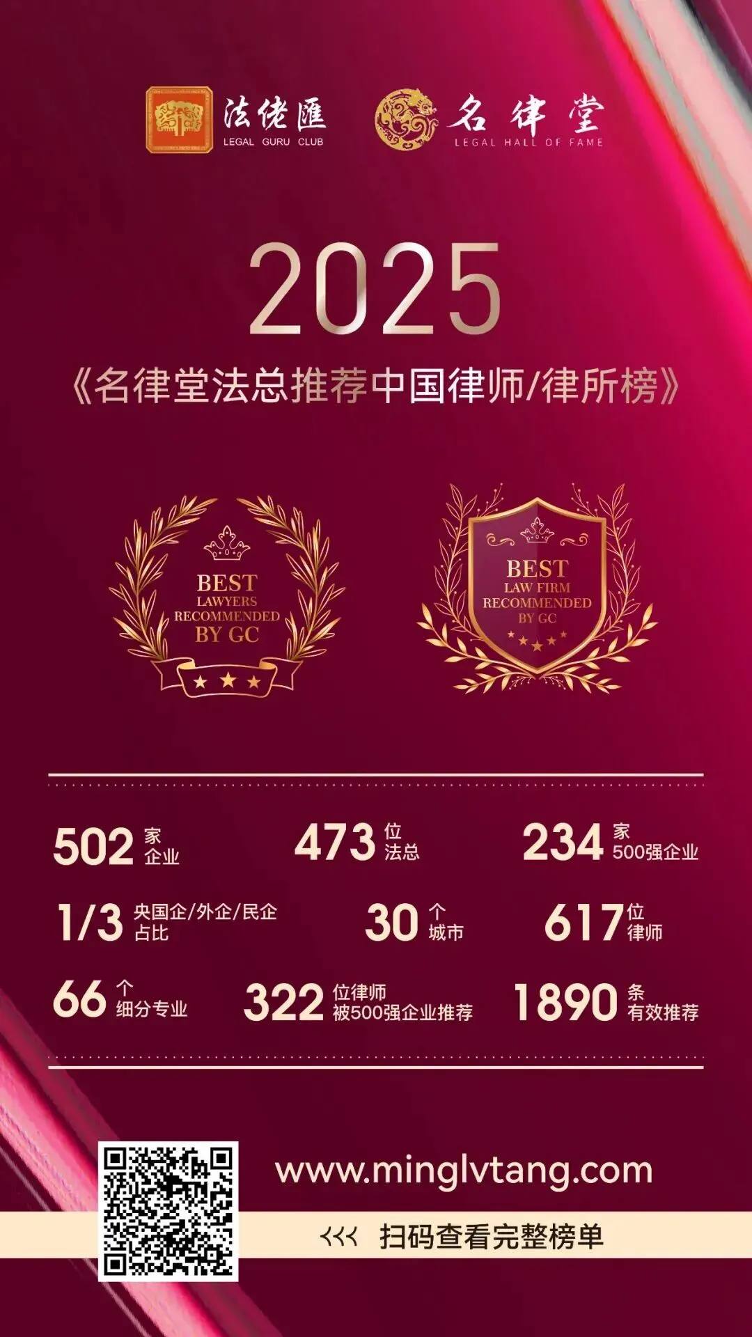 名律堂作为国内领先的法律评级与资源整合机构,依托法佬汇十余年行业资源,构建企业法总与头部律所的精准对接网络。通过权威榜单树立行业标杆:《名律堂法总推荐中国律师 / 律所榜》作为年度权威重磅榜单,汇聚当年业绩卓越的顶尖法律力量,以荣耀加冕致敬行业精英;《名律堂中国法律先锋榜》系列细分榜单,从企业真实需求出发,动态更新,精准匹配细分领域优质律师,为企业选聘提供参考指南。