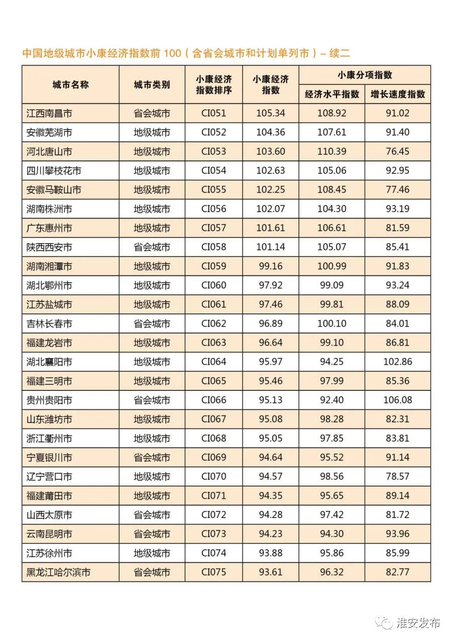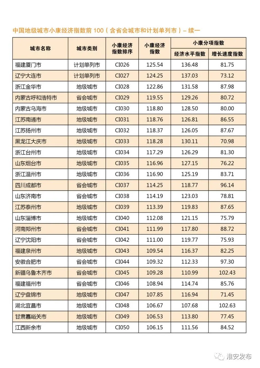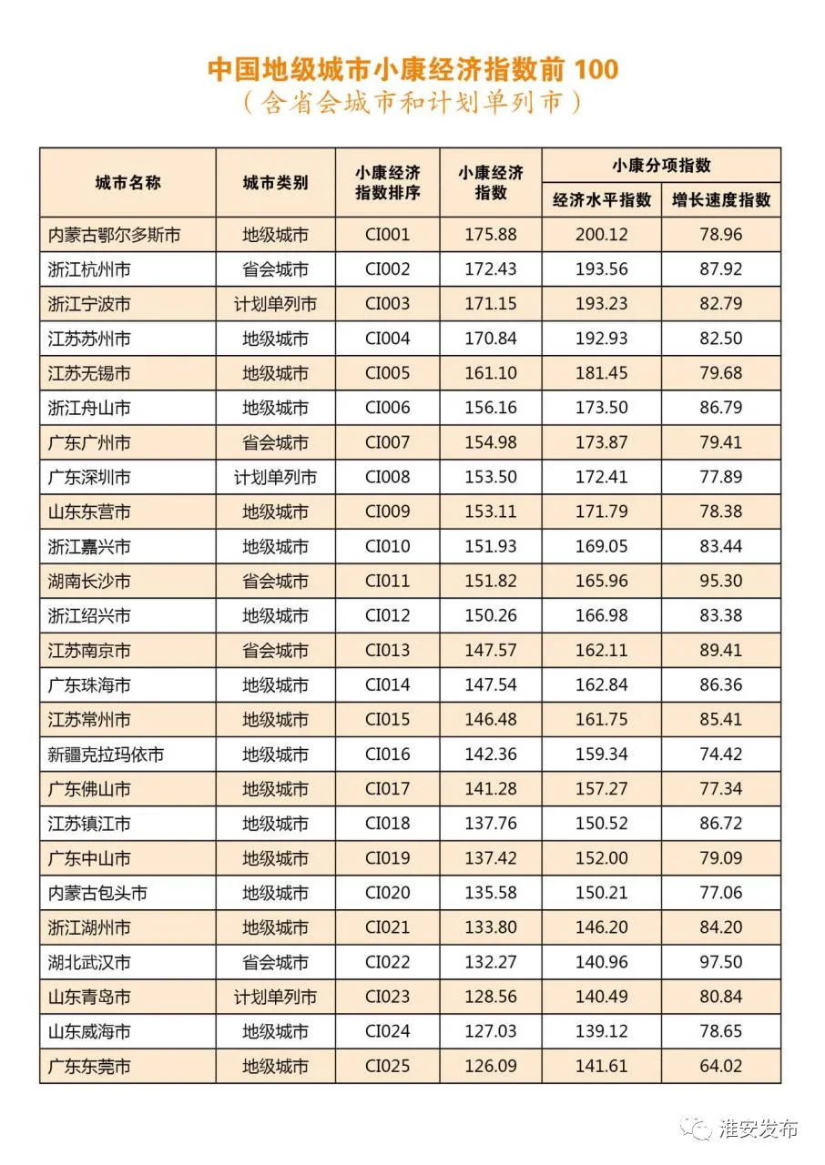 这次是中国城市小康经济指数前100名,同台角逐的可不仅仅是地级市,还有省会城市,计划单列市。杭州南京有,深圳厦门有,苏州珠海也有……