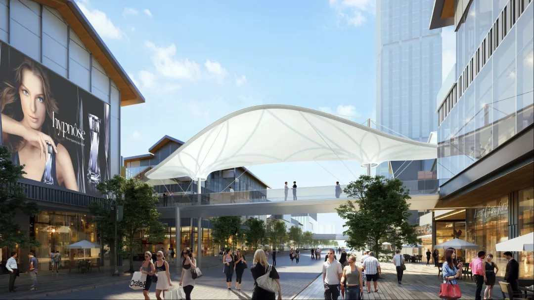 项目定位为“多元生活城市走廊”,综合体总体量达240万平方米,以17万方商业街区为核心,涵盖甲级写字楼、奢华五星酒店、精品酒店、公寓、中高端住宅以及学校。
