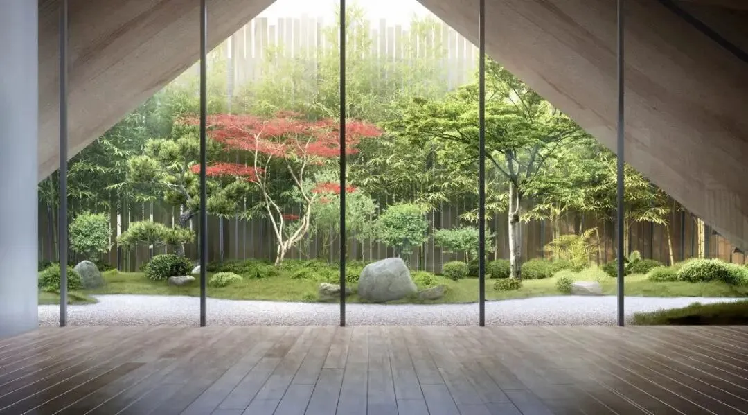 围绕中央花园的区域采用平推玻璃门设计,可根据不同天气实现室内外的灵活切换。