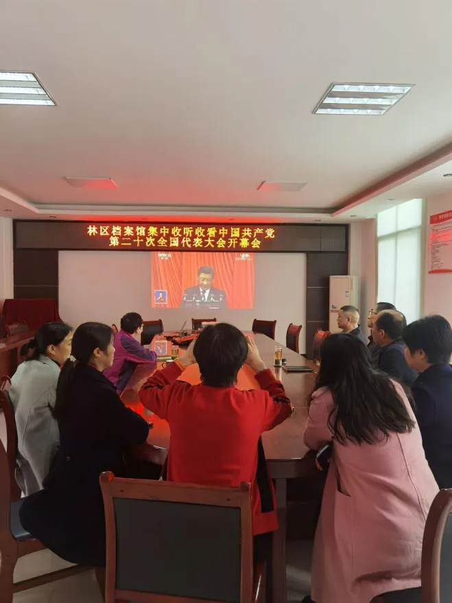 10月16日,神农架林区档案馆组织集中收看二十大开幕会。