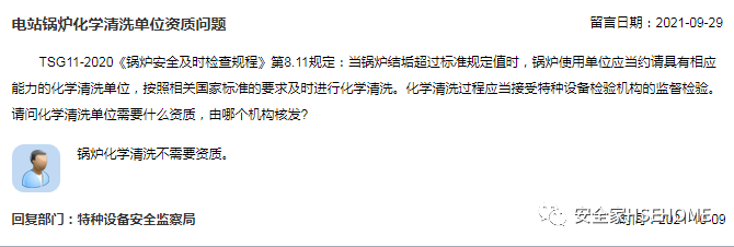 咨询:TSG11-2020《锅炉安全及时检查规程》第8.11规定:当锅炉结垢超过标准规定值时,锅炉使用单位应当约请具有相应能力的化学清洗单位,按照相关国家标准的要求及时进行化学清洗。化学清洗过程应当接受特种设备检验机构的监督检验。请问化学清洗单位需要什么资质,由哪个机构核发?