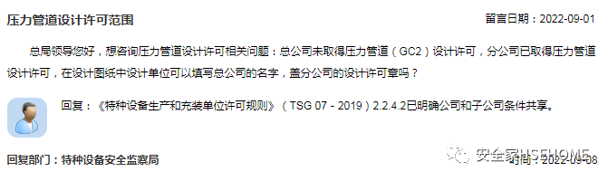咨询:总公司未取得压力管道(GC2)设计许可,分公司已取得压力管道设计许可,在设计图纸中设计单位可以填写总公司的名字,盖分公司的设计许可章吗?