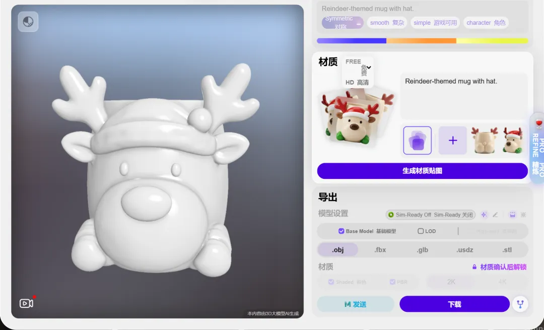 - 独特造型:详细展示驯鹿脸、圣诞帽、鹿角及立体爪子等标志性设计