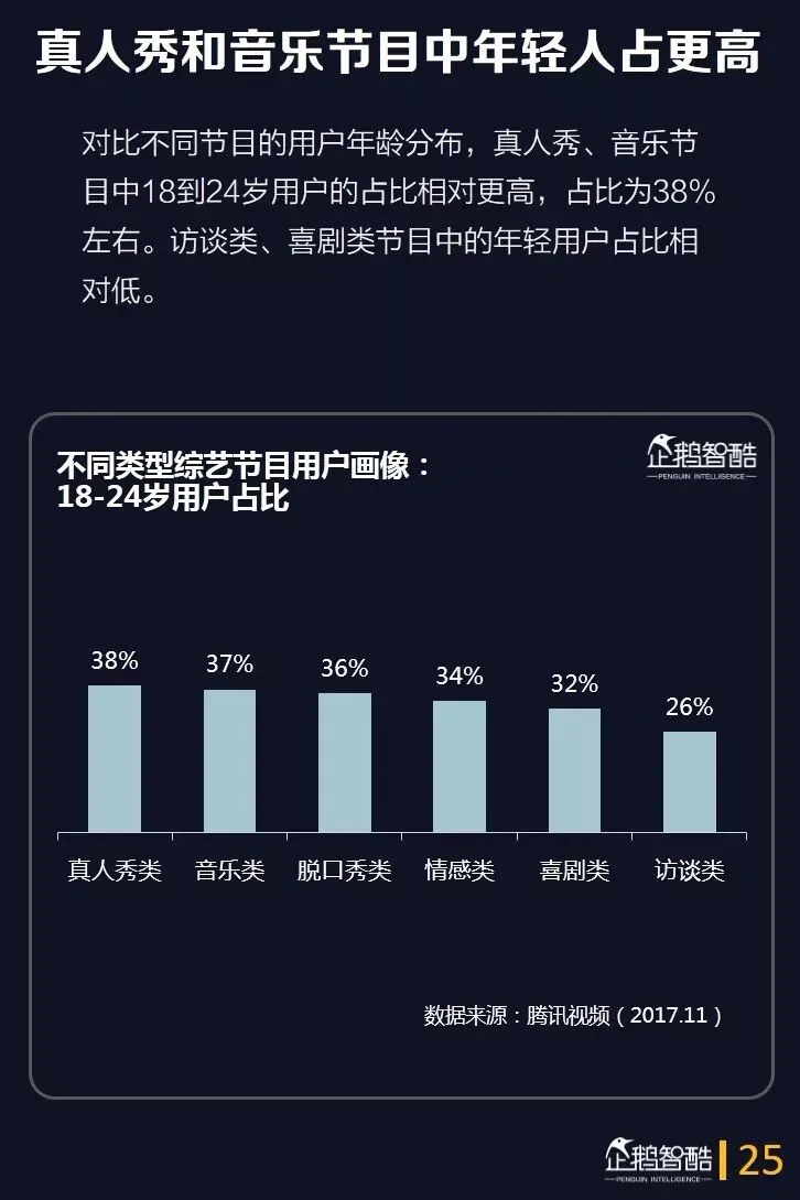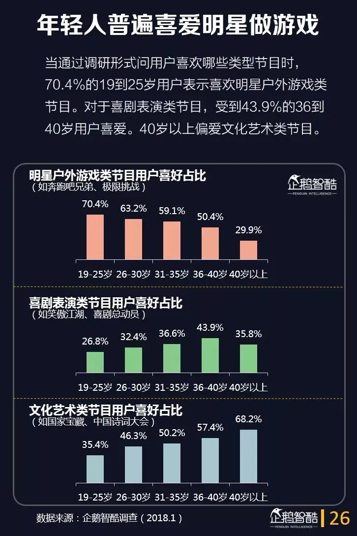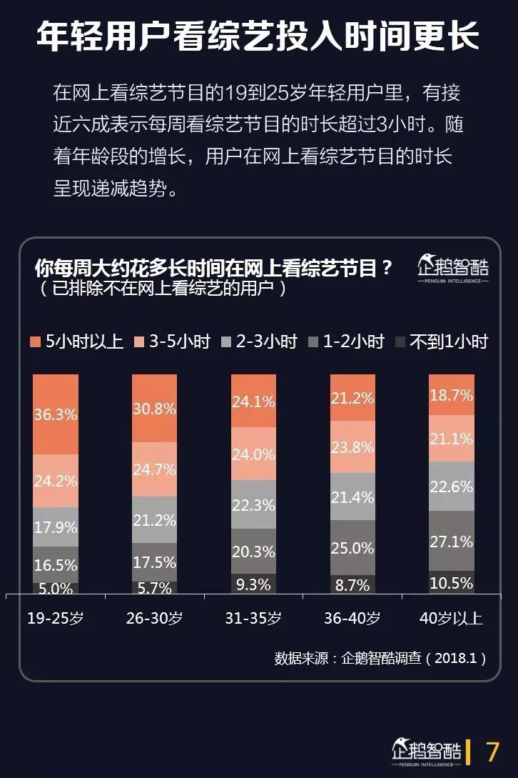 视频网站上观看综艺节目的人群中,超过一半是90后,且这部分用户观看综艺节目的时长高于年长人群。