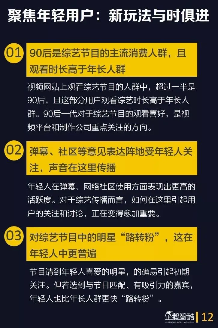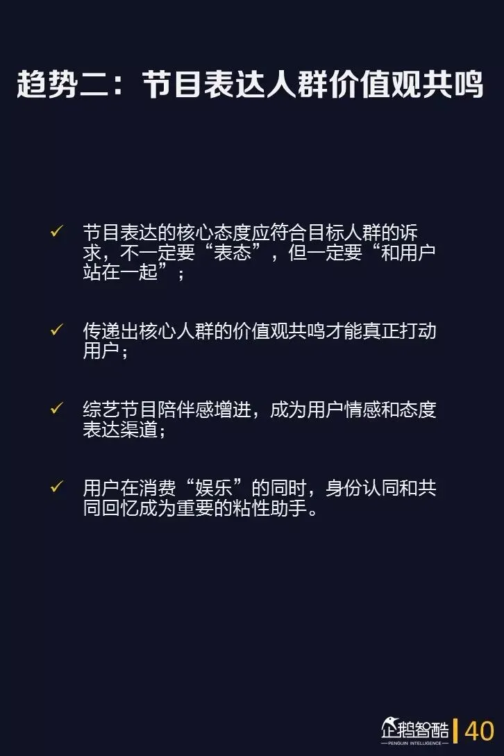 具体有哪些变化?企鹅智酷通过对全国范围手机网民进行针对性调研,并结合来自腾讯视频的综艺节目用户画像数据,归纳出以下核心洞察: