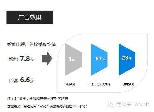 5)智能电视大屏广告接受度,高出传统电视广告19个百分点;