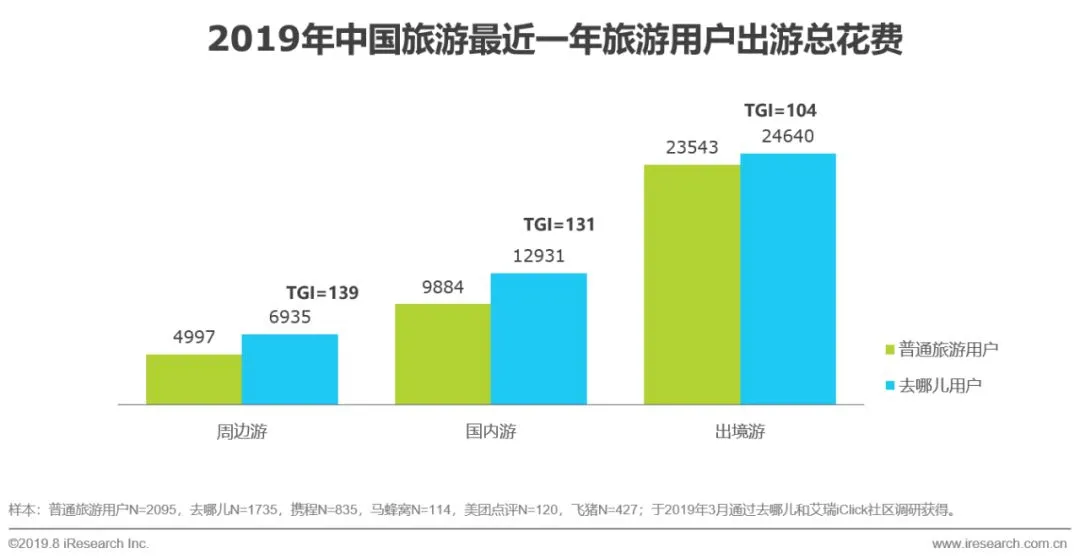 去哪儿用户年度总花费要远超于普通旅游用户,消费能力强