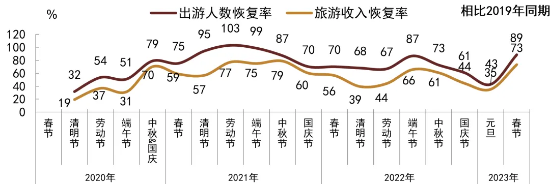 图表1:节假日出游人数与旅游收入恢复率