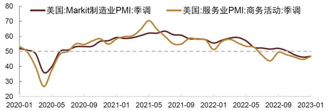 但凡事需要两方面来看,去年11月份以来,美债利率的回落,就已经开始反映了美国通胀回落和美国加息放缓的预期,美国10年国债利率在降到3.5%这个位置后,一直无法再持续向下突破。主要原因就是收益率曲线已经倒挂太深,10年国债收益率已经跟美联储基准利率倒挂了100bp,而美国目前只是放缓加息步伐,还不是开始降息,所以10年国债收益率已经反映了很充分,甚至过于充分。在交易逻辑上,利好出尽即利空可能会发生。事实上,如果回顾2022年二三季度的美国加息,一般都是在议息会议之前,市场预期加息幅度提升,债券收益率会先迎来一轮上升,然后在加息石头落地后,收益率迎来阶段性的回落。也就是典型的买预期卖现实的交易逻辑。那么现在来看,情况可能也会类似。在2月份美联储议息会议之前,市场已经充分预期了加息放缓,那么反而可能在议息会议落地后,市场出现反向,美债收益率阶段性回升。因为从美国1月份的PMI来看,已经停止了连续下滑。毕竟市场对加息预期的放缓,一定程度上压低了利率和提升了风险偏好,而这种利率走低和风险偏好回升,是一定程度会支撑经济的,容易造成通胀环比反弹。比如近期美国房地产市场看到了一些回暖信号。而美国12月份经济数据差于预期可能一定程度上是受到了当时极端寒潮的影响,并不完全是经济的真实反映。这意味着这种关于通胀的博弈并非完全结束了。