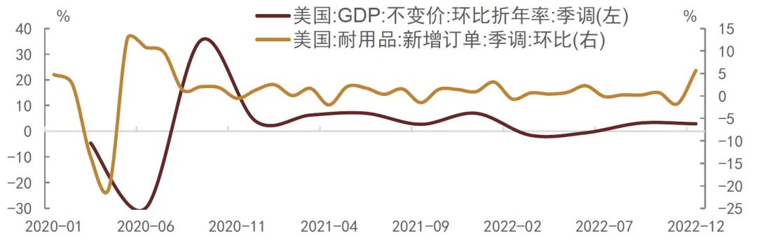 图表7:美国GDP环比折年率与耐用品订单数据