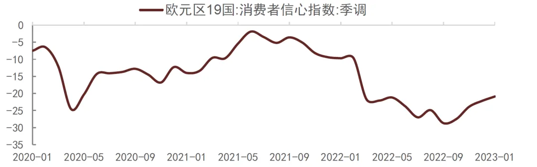 欧元区1月消费者信心指数初值 -20.9,连续第四个月回升,为 2022 年 2 月以来的最高水平,预期-20,前值-22.2。