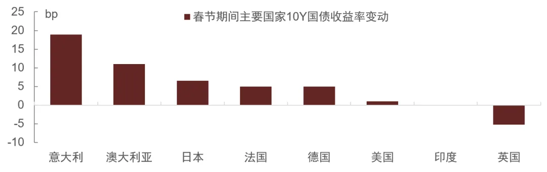 图表12:春节期间主要国家10Y国债收益率变动