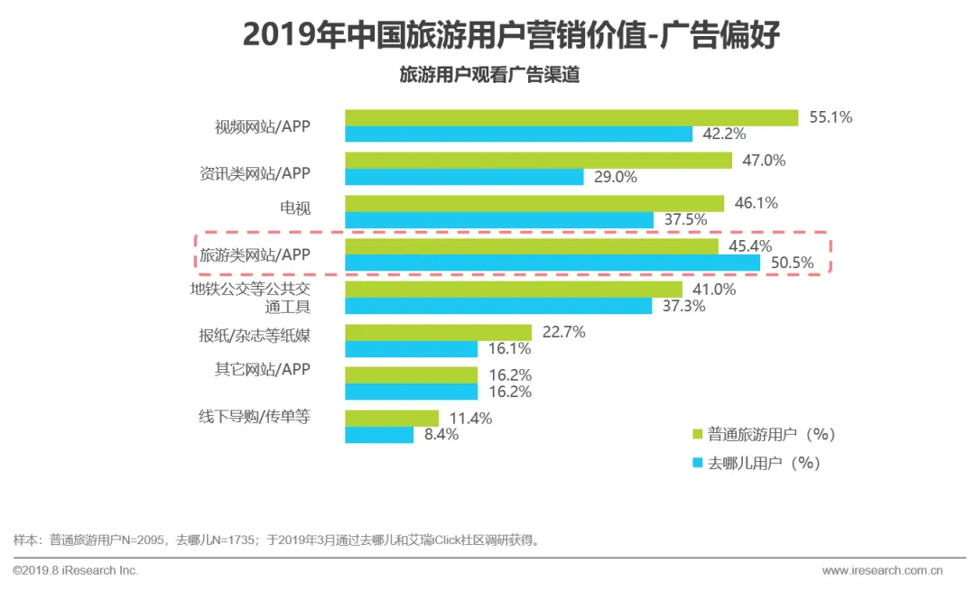 用户常在旅游类网站/APP观看广告,创意广告更具吸引力