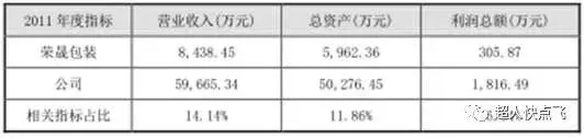 本次收购的前一会计年度,荣晟包装相关财务数据及占公司相应项目的比例如下(未扣除相互间交易的影响):