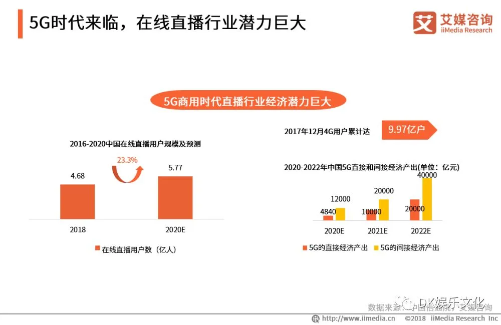 艾媒咨询分析师认为,随着5G技术的应用推广,5G网络高带宽、低时延、海量连接的特性将会为超高清视频带来强有力的支撑,网民步入视频高清化、信息视频化时代,视频成为信息表达的重要载体,在线直播将继续渗透大众的日常生活。从平台发展而言,5G技术能有效提升网速,改善视频画质,将显著提升用户观看体验,提升用户留存度,5G时代下,VR、人脸识别等新技术应用得到支持,赛事直播、企业直播等现场模式将扩大应用范围,直播形式和场景多元化。