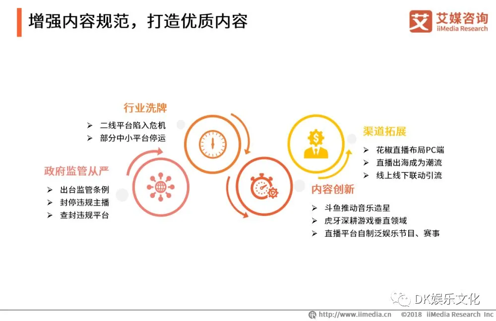 艾媒咨询分析师认为,虽然游戏与娱乐内容仍是直播平台布局重点,但各大平台同时深入探索“直播+”模式,将直播延伸至教育、公益、电商等多细分领域,激发更多潜在用户,直播形式和内容向规范化、多样化方向发展。在转型时期,直播从内容输出衍生工具输出,渗透社会生活的各个层面,教育直播、企业直播、电竞直播等或将成为新增长点。各类型平台将细化市场定位,深耕垂直领域,加强线上线下联动,打造品牌IP,延长用户购买行为和挖掘用户价值,形成行业闭环。