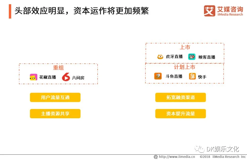艾媒咨询分析师认为,直播行业投资进入理性期,虎牙、斗鱼获高额融资,腰部垂直平台也受资本青睐。头部平台掀起上市潮,在资本市场寻求突破,二线平台则通过重组、收购、合作促进资源整合,实现优势互补,抵御竞争平台冲击。在部分平台遭遇行业洗牌的危机下,直播平台将加快资本运作,布局产业链上下游,打造产业生态体系。