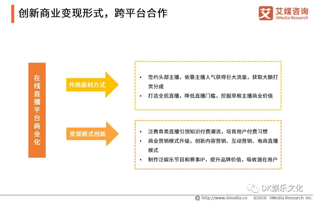 艾媒咨询分析师认为,随着直播用户规模增长变缓,以用户数量为支撑,依靠主播流量、用户打赏的盈利模式表现乏力,高额的宽带成本和运维成本成为直播平台面临的普遍困境,在此趋势下平台将继续拓宽业务边界,创新商业模式,直播平台将顺应知识经济潮流培育用户付费习惯,加强营销产业链合作升级,拓展内容营销和互动营销形式,制作泛娱乐节目或赛事IP吸引潜在用户。