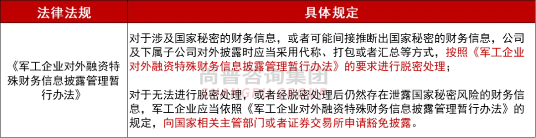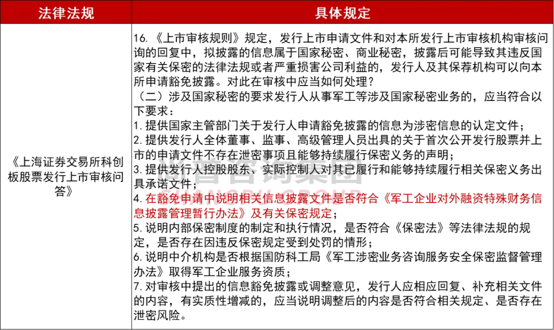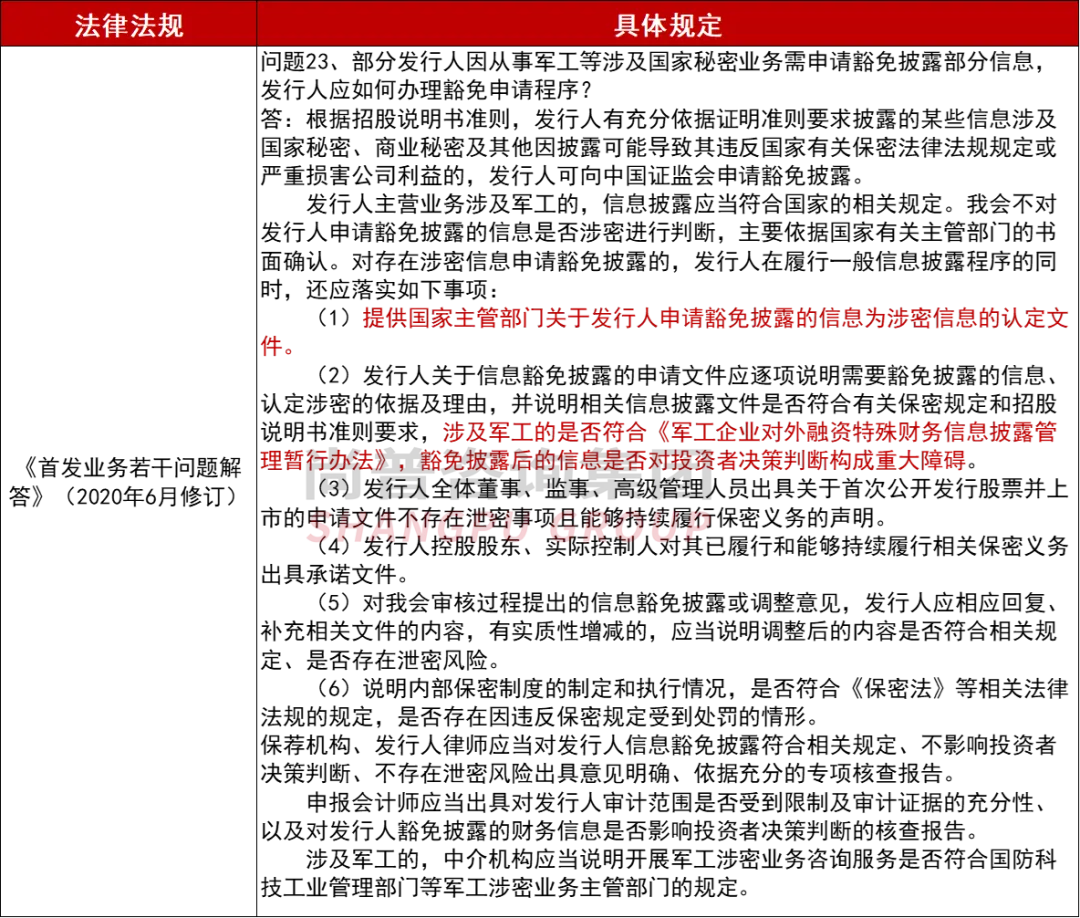 涉及流程:由国防科工局进行涉密信息披露审查(信息披露豁免),并出具涉密信息认定披露