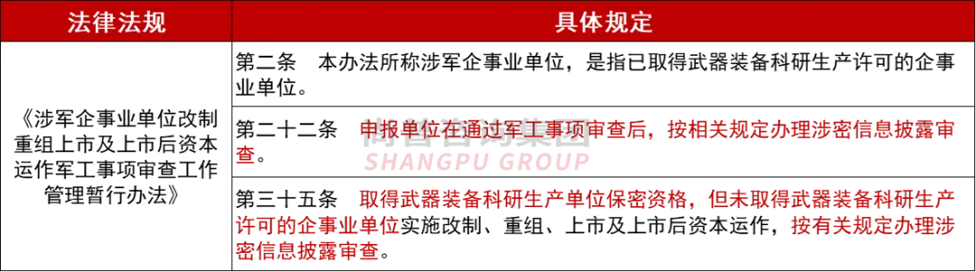 根据上述法律法规可以总结出,军工企业根据取得的不同资质,涉密信息审查存在以下两种情况: