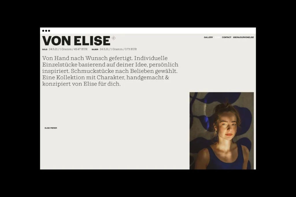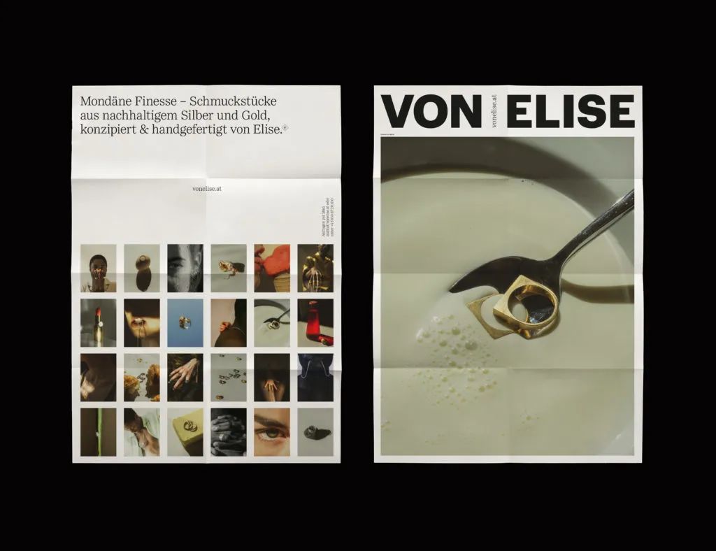 Learning her craft since the age of 14, the founder Von Elise, Elise Pierer, is fast becoming known in Graz, Austria for her sustainable, fresh jewellery. The 25 year old former dental technician looked to STUDIO FURORE to capture the precision and individuality of her brand and pieces, as well as reflecting her service of taking a client’s existing jewellery, melting it, and reforming it into something that continues to have a place in the beholder’s daily life. STUDIO FURORE wanted to express the hand-made jewellery brand’s ability to cherish the everyday moments that Von Elise’s distinctive pieces adorn.
