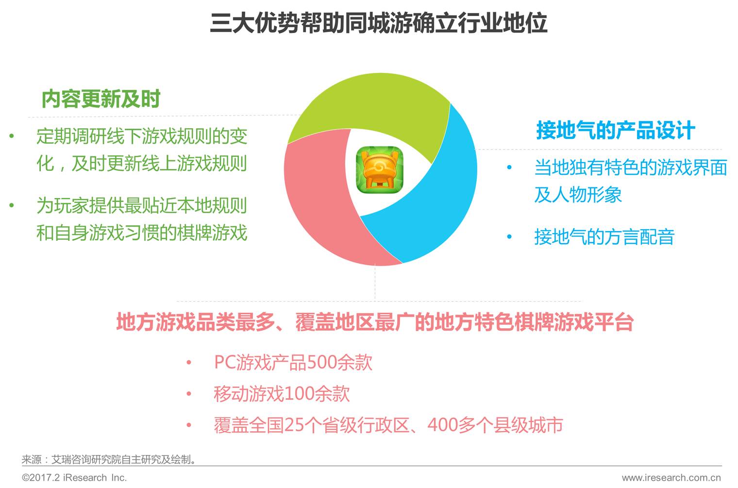 通过十余年的经验积累,同城游的产品策略早已成熟。其中多而广的棋牌品类开发及接地气的产品、规则设定是帮助同城游多年来持续吸引地方特色棋牌用户的主要特点所在。