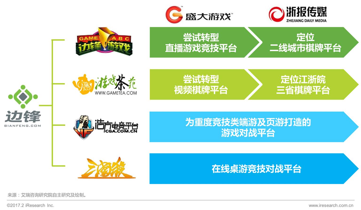 通过多个品牌平台的运作,边锋集团成功覆盖了大量线上对战平台用户。在经历了两次重大并购之后,在新东家的重塑与转型下边锋游戏与游戏茶苑两家平台的差异化愈发明显,边锋集团的多品牌战略为自己在地方游戏市场争得了一席之地。