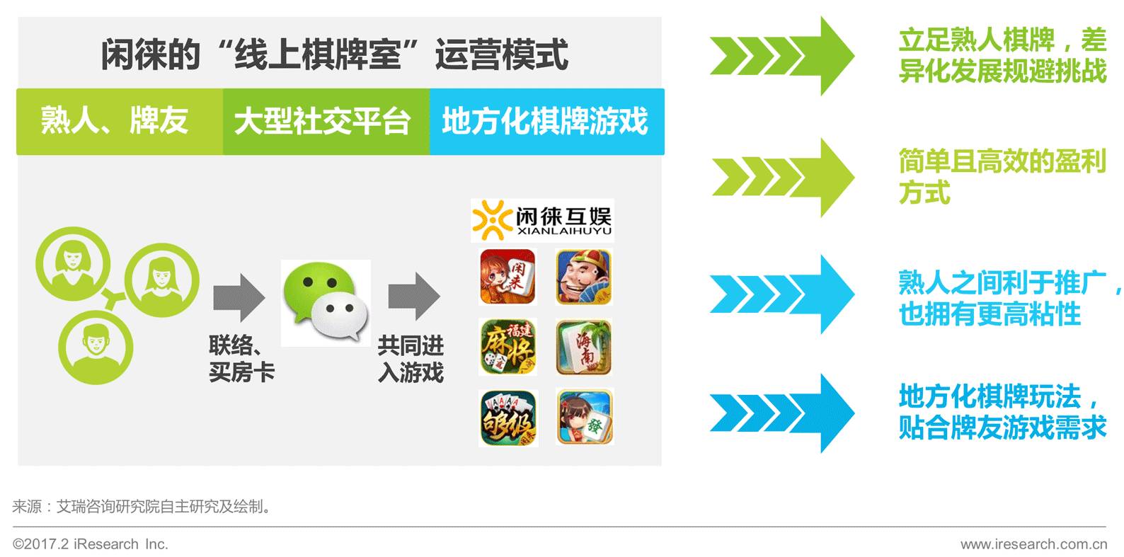 1998年联众游戏上线,中国线上棋牌游戏市场正式启动。在这18年间不同的棋牌游戏平台不断推陈出新,各种别具特色的运营模式也不断地为市场带来了活力。2016年在闲徕等新兴平台的推动下,棋牌游戏行业有望迎来再创新与再突破。