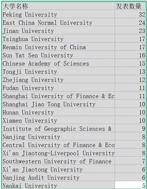 | Valuing primary schools in urban China | Chan, Jimmy; Fang, Xian; Wang, Zhi; Zai, Xianhua; Zhang, Qinghua | JOURNAL OF URBAN ECONOMICS | 2020 | 3 |