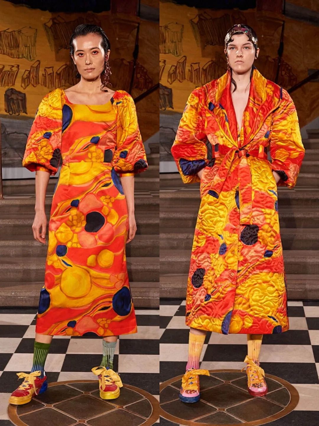 Helmstedt的作品将色彩、质量和工艺放在首位,所有印花图案都是Emilie Helmstedt 手绘,以鲜艳的水粉和油彩呈现出清晰可见的笔触,并采用最优质的面料制成。丰富的色彩和无限创意的设计像置身于童话之中,犹如置身于爱丽丝梦游仙境的梦幻童话中,非常时尚前卫且富有个性。