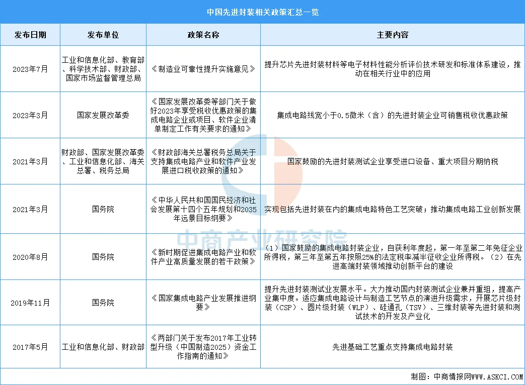 先进封装行业发展政策