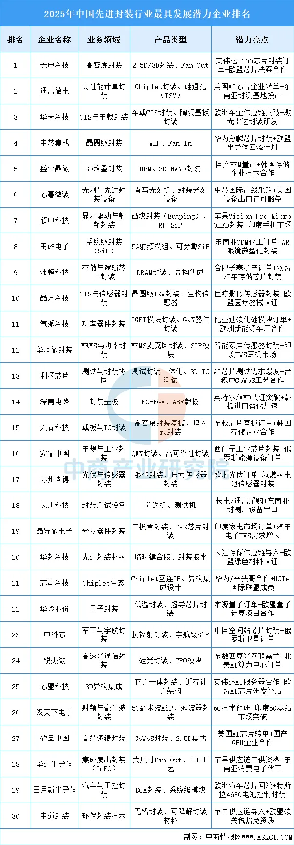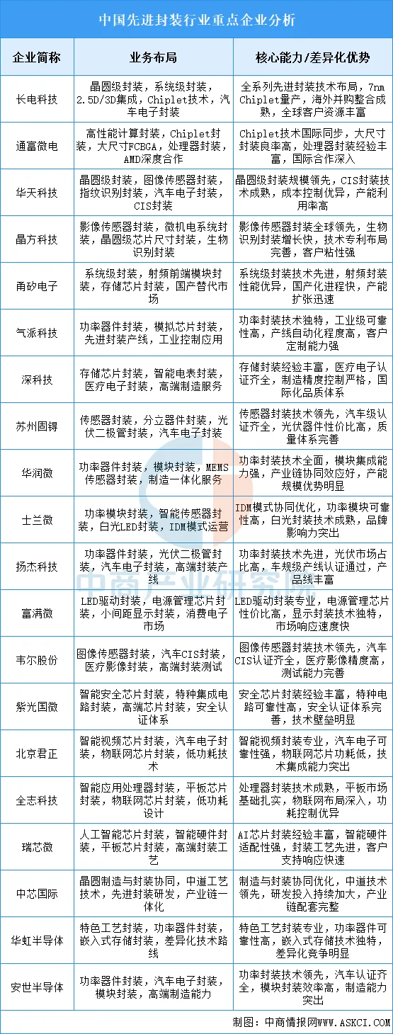 先进封装行业重点企业