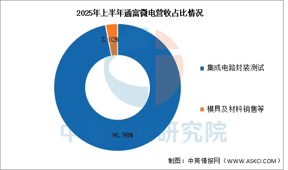 2025年上半年实现营业收入130.38亿元,同比增长17.67%;实现归母净利润4.12亿元,同比增长27.55%。2025年上半年主营产品包括集成电路封装测试、模具及材料销售等,营收分别占整体的96.98%、3.02%。