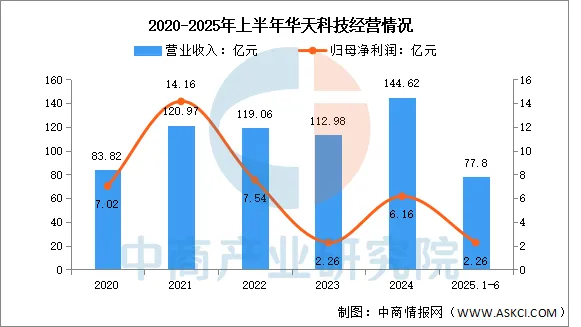 2025年上半年实现营业收入77.8亿元,同比增长15.81%;实现归母净利润2.26亿元,同比增长1.35%。