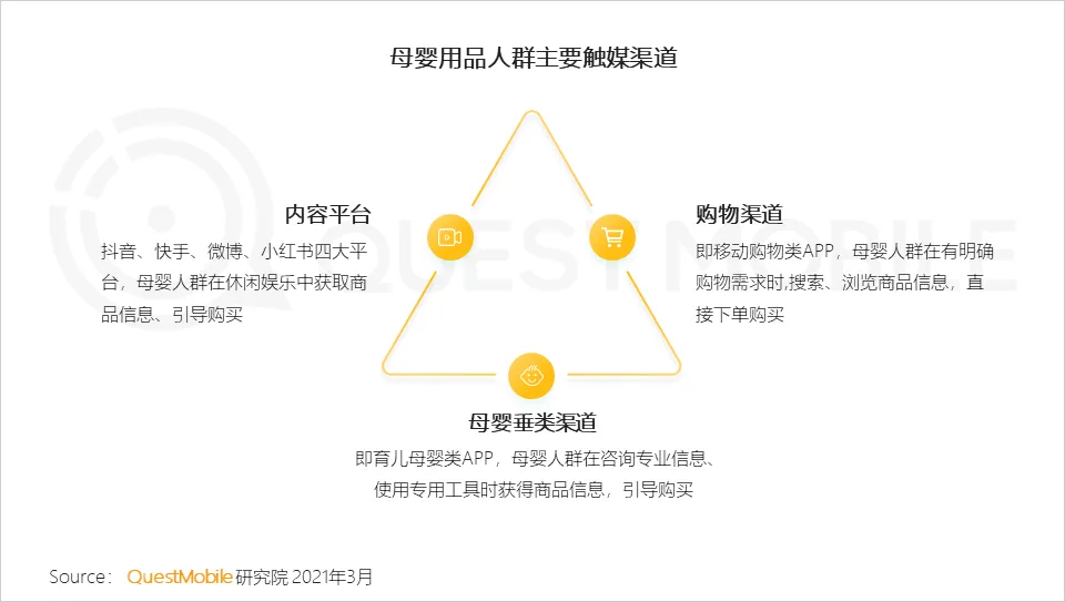 2、母婴人群在日常中需持续购买各类商品,内容平台、购物渠道及垂类渠道是其获取信息、做出购买决策的主要来源