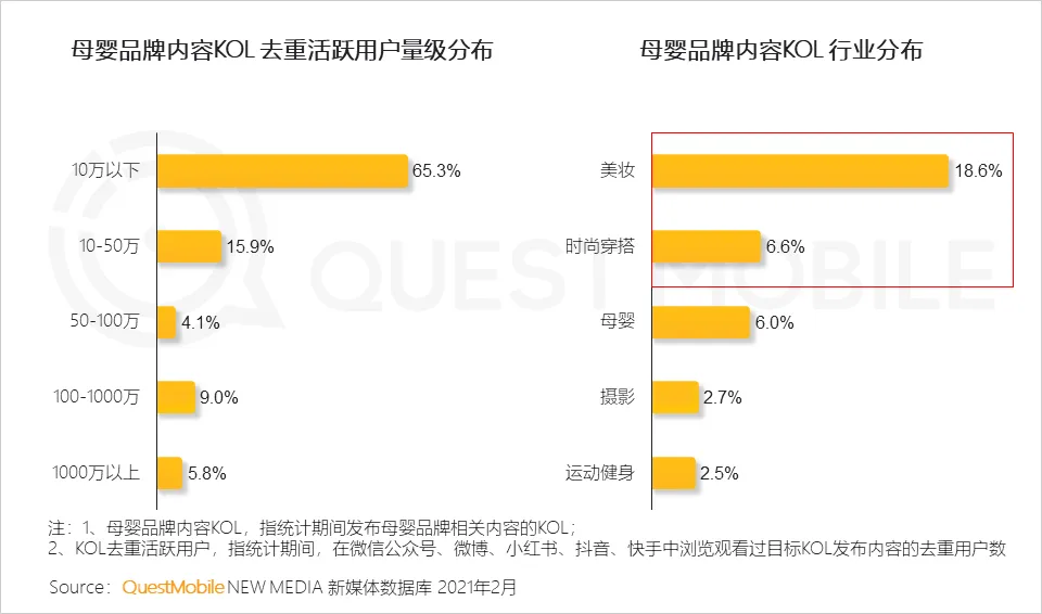 2、中尾部KOL成为母婴品牌营销主力,美妆、时尚穿搭类KOL跨界推广母婴用品成为行业重要的营销特征