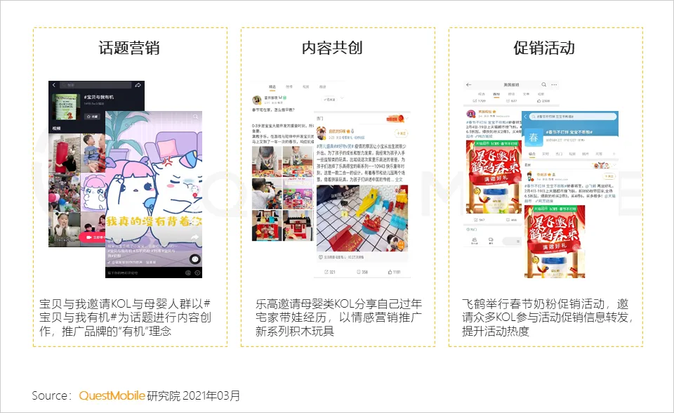 4、各品牌通过话题营销、邀请各类KOL进行内容创作,传达品牌理念、推广促销活动