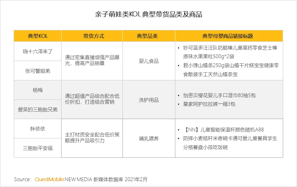1.3 亲子萌娃类KOL通过日常的育儿短视频聚集粉丝、收获粉丝信赖后,通过直播销售食品、洗护用品
