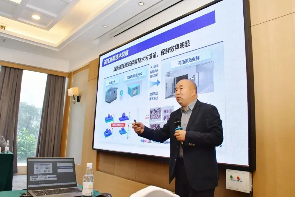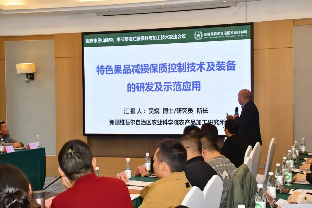 新疆农业科学院农产品贮藏加工研究所所长吴斌研究员在会上分享了“减压熏蒸保质减损技术”的研发成果与应用经验。该技术已入选农业农村部“火花技术”成果库,在新疆特色果品保鲜中成效显著,为重庆相关产业提供了有益参考。