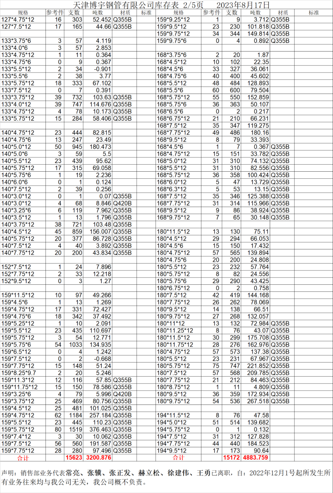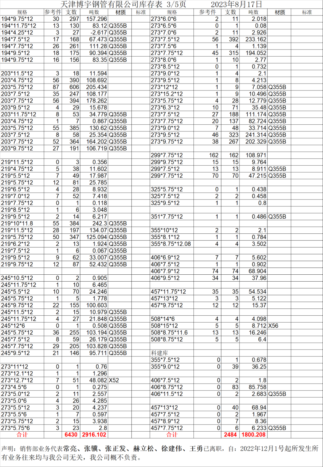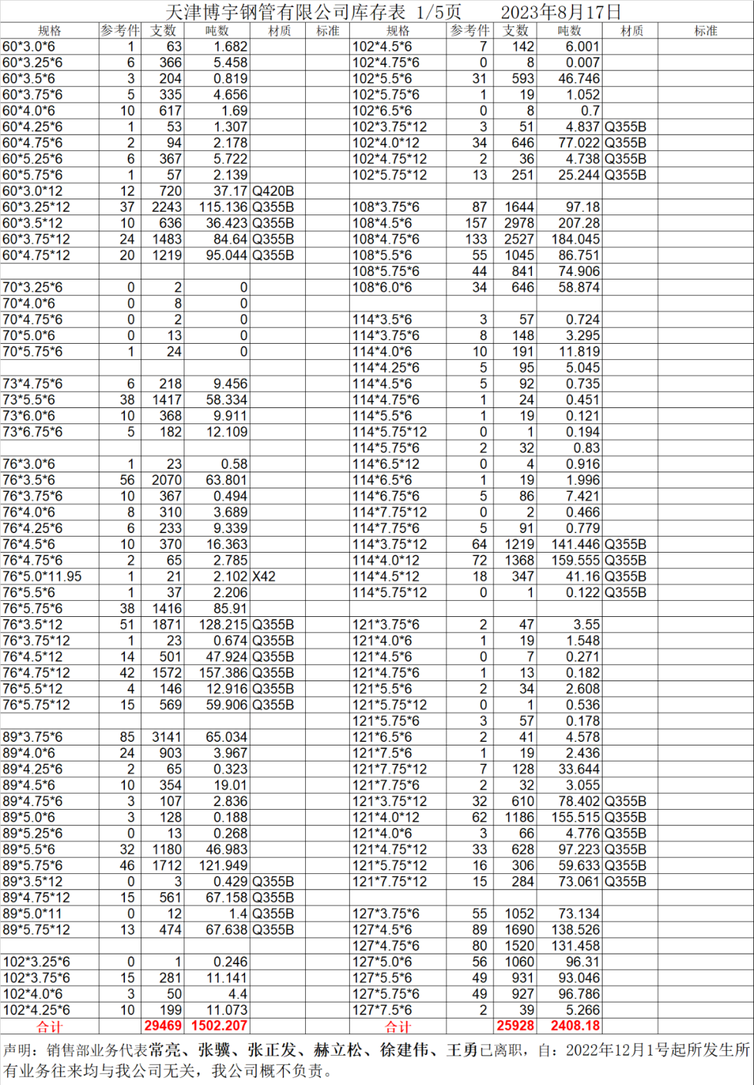 【博爱管道集团】8月17日“博爱牌”钢管库存