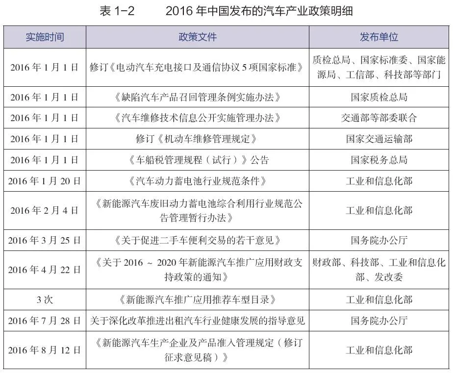 2016年的汽车政策从更好的布局汽车产业的角度出发,积极改善汽车消费环境,同时还加强保障消费者的合法权益,提高汽车制造企业的公信力,规范与促进国内汽车市场的健康发展;对新能源汽车发展领域也进行了大刀阔斧的改革与尝试,并针对新能源汽车的后市场的发展提出了规范,促进中国汽车产业更加快速、健康的发展。
