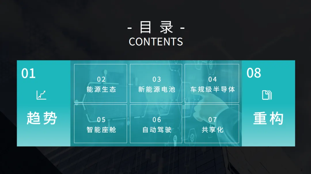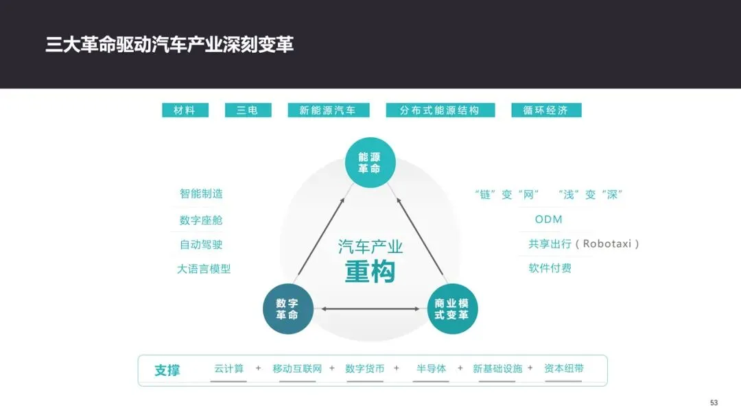 包括智能制造、数字座舱、自动驾驶在内的数字革命,新能源汽车、分布式能源结构、循环经济等能源革命和供应关系变革、共享出行、软件付费等商业模式变革,正共同推动着汽车产业重构。