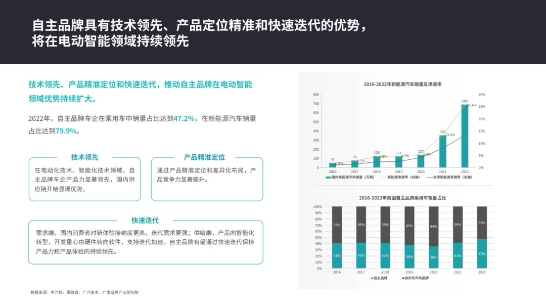 自主品牌具有技术领先、产品定位精准和快速迭代的优势,将在电动智能领域持续领先