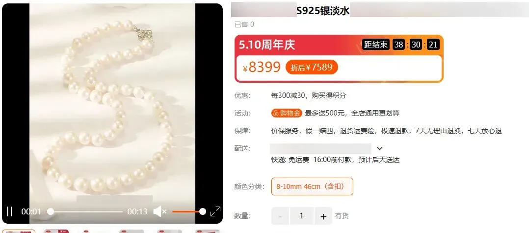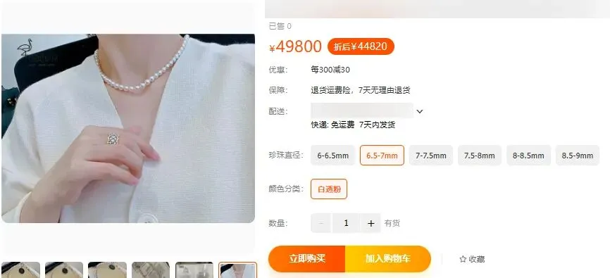 举例说明:我们这期的顶级淡水珍珠项链定价在千元上下,它是珠光顶级、色泽顶级、完美度顶级的淡水珍珠天花板品质。