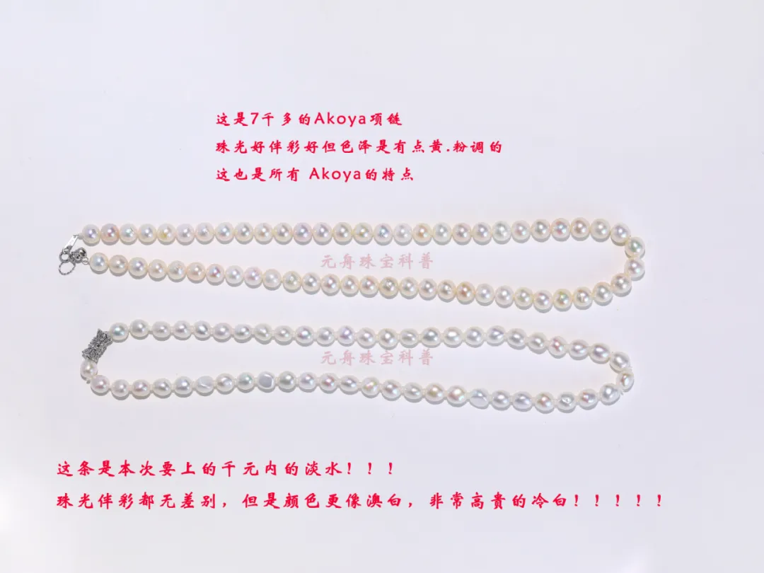 它真的可以做到:与Akoya比珠光(超亮),又与澳白比色调的(又脱离黄气,呈现高贵冷白),你就感受一下,感受一下这种:超亮+又高贵冷白的淡水珍珠吧!!!!
