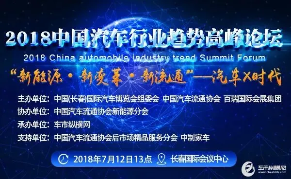 以“新能源•新变革•新流通”--汽车X时代为主题的2018中国汽车行业趋势高峰论坛将于7月12日在长春国际会议中心隆重召开。同时,第十五届中国(长春)国际汽车博览会将于7月13日-22日在长春国际会展中心盛装举行。本次高峰论坛是由中国(长春)国际汽车博览会组委会、中国汽车流通协会、百瑞国际会展集团有限公司主办,中国汽车流通协会新能源分会协办,车市纵横网承办,中国汽车流通协会后市场精品服务分会、中制家车作为特别支持,这将是新能源汽车发展史和新能源汽车流通体制建设上举足轻重的一次思想盛会。